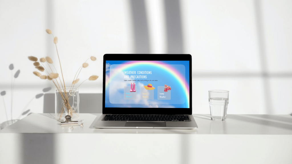 In the project I’m sharing in the link below, I took part in a challenge called Glassmorphism. This challenge gave me the chance to finally use Figma for creating transparent weather cards. I designed most of my assets in Figma and then seamlessly integrated them into my Articulate Storyline project.